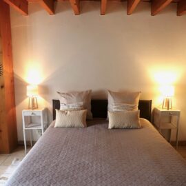La chambre 4 est une chambre sobre, dans des tons bleus, bois et gris. Elle se compose d’un grand lit 180x200cm, ainsi que d’une salle de bain avec cabine de douche. Vous trouverez à votre disposition un plateau avec une bouilloire et des sachets de tisane.